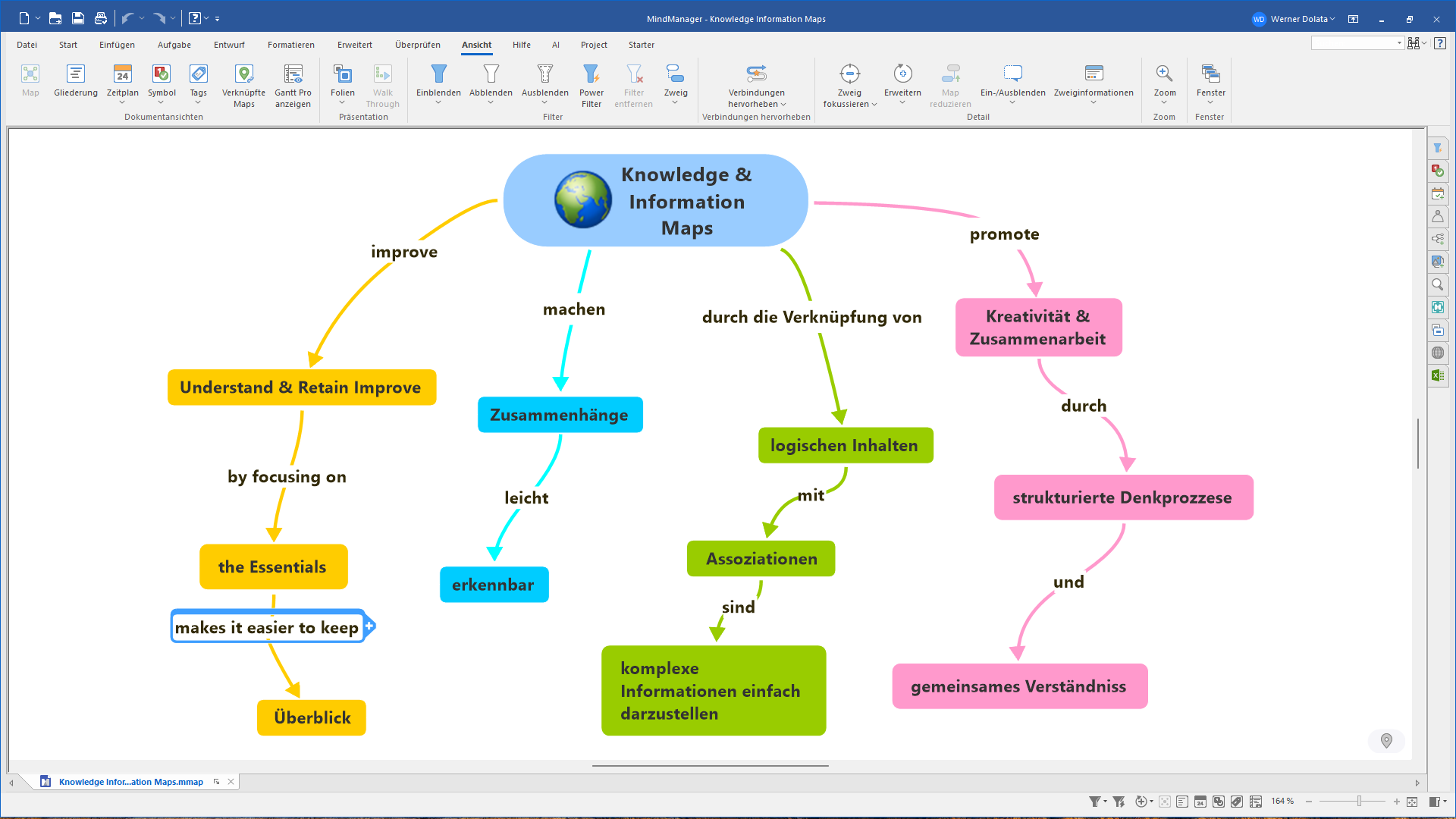 MindManager ist eine professionelle Software für Mindmapping und visuelles Denken, die hilft, Ideen, Informationen und komplexe Zusammenhänge strukturiert darzustellen und zu organisieren.
